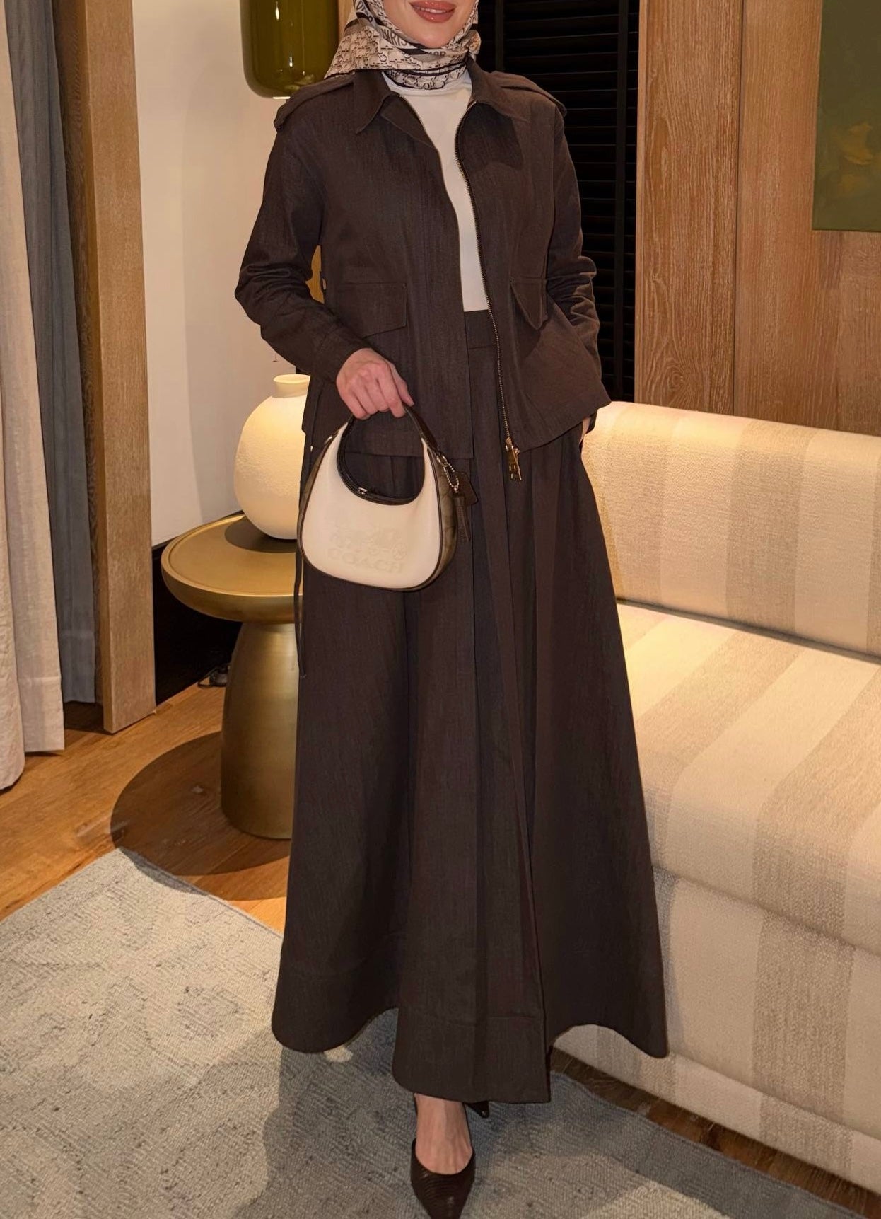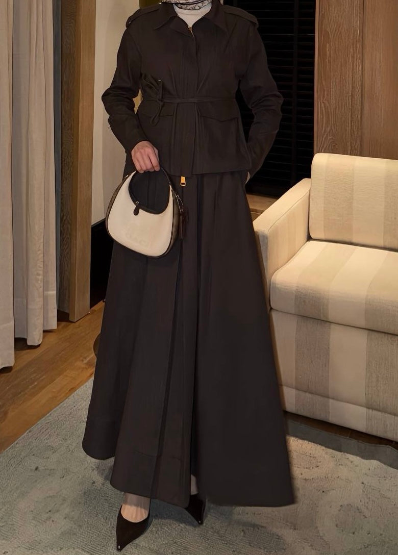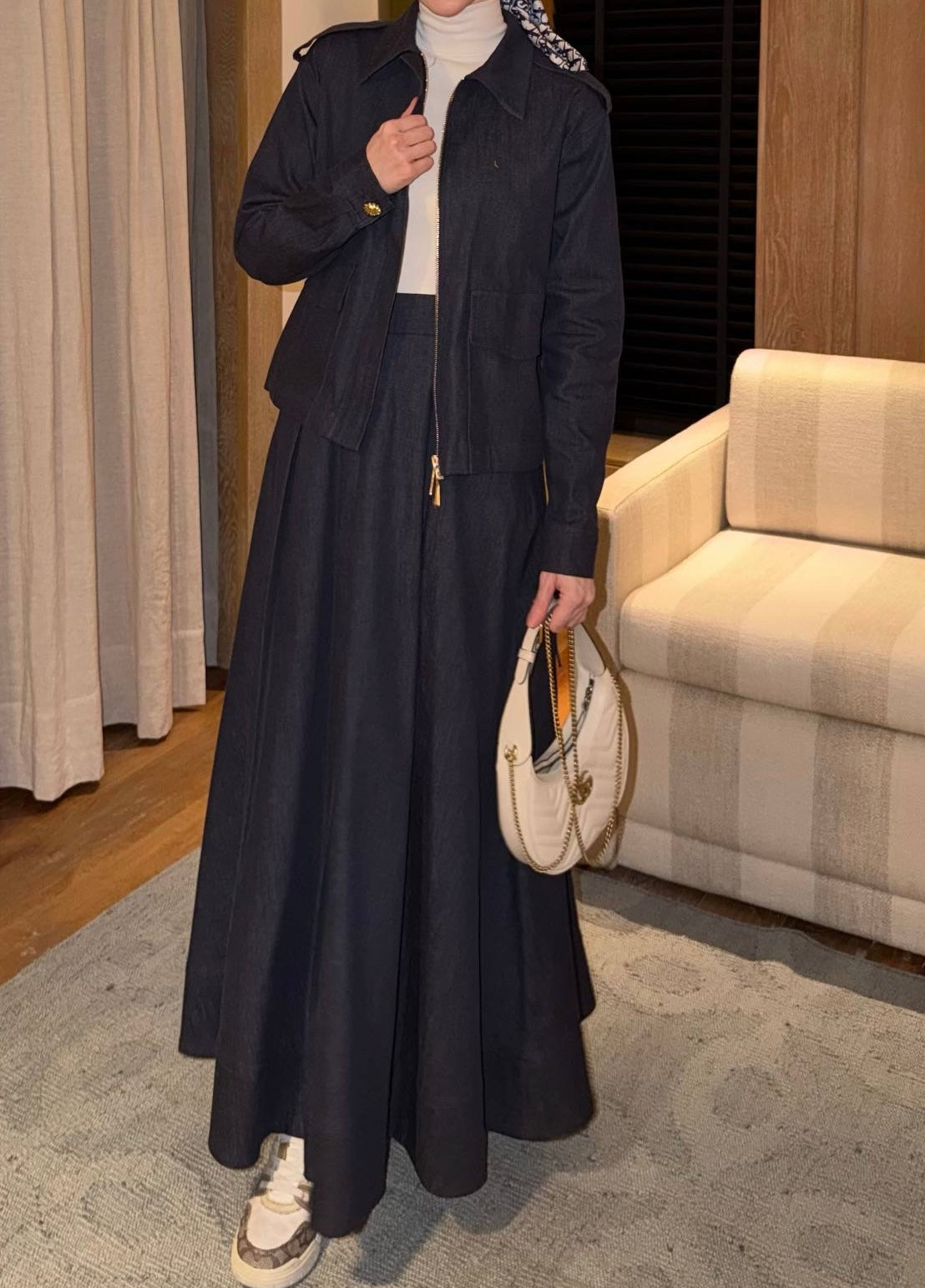 Pleated denim skirt set